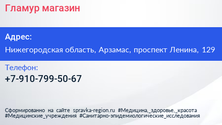 Гламур, магазин по адресу Нижегородская область, Арзамас, проспект Ленина, 129 в дальнейшем Организация, размещена в следующих категориях: