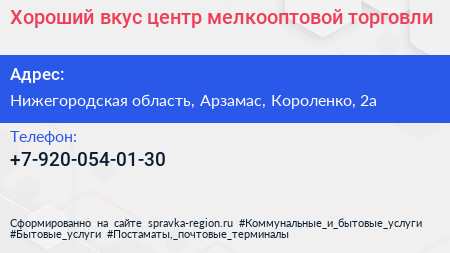 Хороший вкус, центр мелкооптовой торговли по адресу Нижегородская область, Арзамас, Короленко, 2а в дальнейшем Организация, размещена в следующих категориях: