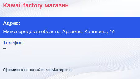 Kawaii factory, магазин по адресу Нижегородская область, Арзамас, Калинина, 46 в дальнейшем Организация, размещена в следующих категориях: