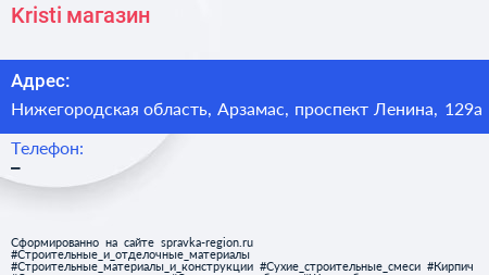 Kristi, магазин по адресу Нижегородская область, Арзамас, проспект Ленина, 129а в дальнейшем Организация, размещена в следующих категориях: