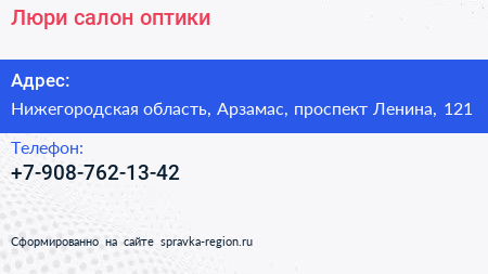 Люри, салон оптики по адресу Нижегородская область, Арзамас, проспект Ленина, 121 в дальнейшем Организация, размещена в следующих категориях: