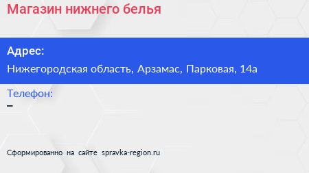 Магазин нижнего белья по адресу Нижегородская область, Арзамас, Парковая, 14а в дальнейшем Организация, размещена в следующих категориях: