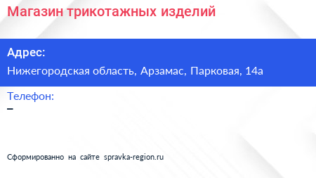 Магазин трикотажных изделий по адресу Нижегородская область, Арзамас, Парковая, 14а в дальнейшем Организация, размещена в следующих категориях: