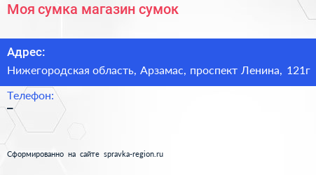Моя сумка, магазин сумок по адресу Нижегородская область, Арзамас, проспект Ленина, 121г в дальнейшем Организация, размещена в следующих категориях: