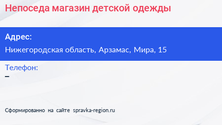 Непоседа, магазин детской одежды по адресу Нижегородская область, Арзамас, Мира, 15 в дальнейшем Организация, размещена в следующих категориях: