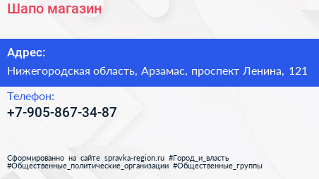 Шапо, магазин по адресу Нижегородская область, Арзамас, проспект Ленина, 121 в дальнейшем Организация, размещена в следующих категориях: