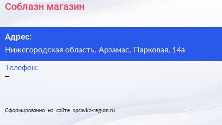 Соблазн, магазин по адресу Нижегородская область, Арзамас, Парковая, 14а в дальнейшем Организация, размещена в следующих категориях:
