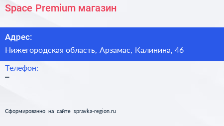 Space Premium, магазин по адресу Нижегородская область, Арзамас, Калинина, 46 в дальнейшем Организация, размещена в следующих категориях: