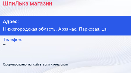 ШпиЛька, магазин по адресу Нижегородская область, Арзамас, Парковая, 1а в дальнейшем Организация, размещена в следующих категориях: