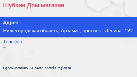 Шубкин Дом, магазин по адресу Нижегородская область, Арзамас, проспект Ленина, 192 в дальнейшем Организация, размещена в следующих категориях:
