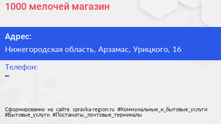 1000 мелочей, магазин по адресу Нижегородская область, Арзамас, Урицкого, 16 в дальнейшем Организация, размещена в следующих категориях: