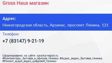 Gross Haus, магазин по адресу Нижегородская область, Арзамас, проспект Ленина, 121 в дальнейшем Организация, размещена в следующих категориях: