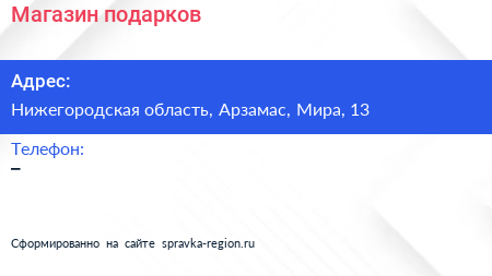 Магазин подарков по адресу Нижегородская область, Арзамас, Мира, 13 в дальнейшем Организация, размещена в следующих категориях: