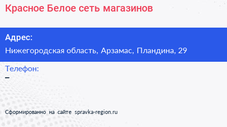 Красное & Белое, сеть магазинов по адресу Нижегородская область, Арзамас, Пландина, 29 в дальнейшем Организация, размещена в следующих категориях: