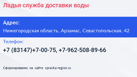 Ладья, служба доставки воды по адресу Нижегородская область, Арзамас, Севастопольская, 42 в дальнейшем Организация, размещена в следующих категориях: