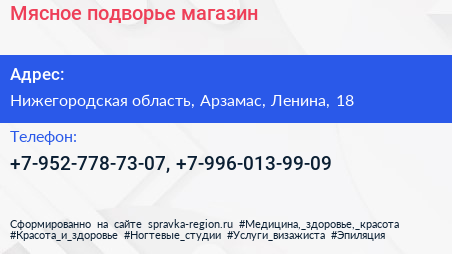 Мясное подворье, магазин по адресу Нижегородская область, Арзамас, Ленина, 18 в дальнейшем Организация, размещена в следующих категориях:
