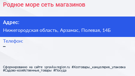 Родное море, сеть магазинов по адресу Нижегородская область, Арзамас, Полевая, 14Б в дальнейшем Организация, размещена в следующих категориях: