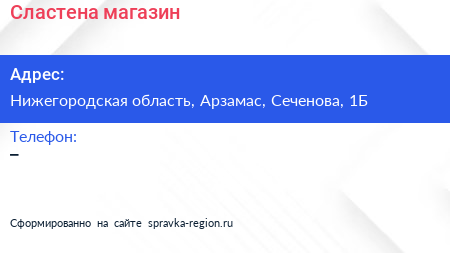 Сластена, магазин по адресу Нижегородская область, Арзамас, Сеченова, 1Б в дальнейшем Организация, размещена в следующих категориях: