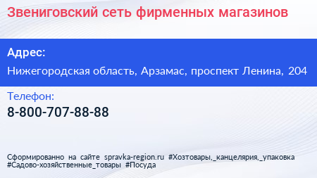 Звениговский, сеть фирменных магазинов по адресу Нижегородская область, Арзамас, проспект Ленина, 204 в дальнейшем Организация, размещена в следующих категориях: