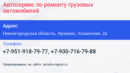 Автосервис по ремонту грузовых автомобилей по адресу Нижегородская область, Арзамас, Казанская, 2а в дальнейшем Организация, размещена в следующих категориях: