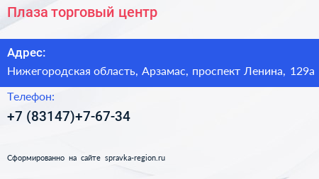 Плаза, торговый центр по адресу Нижегородская область, Арзамас, проспект Ленина, 129а в дальнейшем Организация, размещена в следующих категориях: