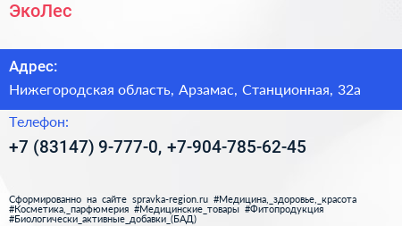 ЭкоЛес по адресу Нижегородская область, Арзамас, Станционная, 32а в дальнейшем Организация, размещена в следующих категориях: