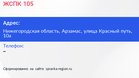 ЖСПК №105 по адресу Нижегородская область, Арзамас, улица Красный путь, 10а в дальнейшем Организация, размещена в следующих категориях: