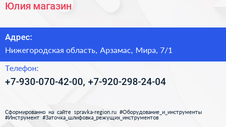 Юлия, магазин по адресу Нижегородская область, Арзамас, Мира, 7/1 в дальнейшем Организация, размещена в следующих категориях: