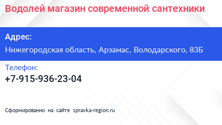 Водолей, магазин современной сантехники по адресу Нижегородская область, Арзамас, Володарского, 83Б в дальнейшем Организация, размещена в следующих категориях:
