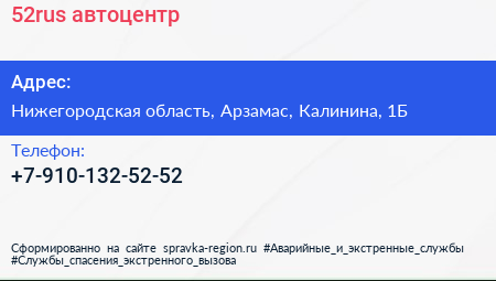 52rus, автоцентр по адресу Нижегородская область, Арзамас, Калинина, 1Б в дальнейшем Организация, размещена в следующих категориях:
