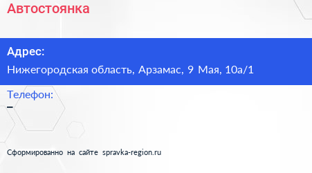 Автостоянка по адресу Нижегородская область, Арзамас, 9 Мая, 10а/1 в дальнейшем Организация, размещена в следующих категориях: