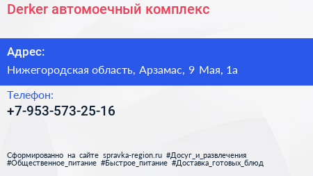 Derker, автомоечный комплекс по адресу Нижегородская область, Арзамас, 9 Мая, 1а в дальнейшем Организация, размещена в следующих категориях: