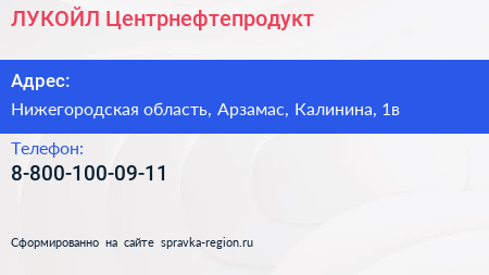ЛУКОЙЛ-Центрнефтепродукт по адресу Нижегородская область, Арзамас, Калинина, 1в в дальнейшем Организация, размещена в следующих категориях: