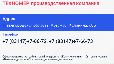 ТЕХНОМЕР, производственная компания по адресу Нижегородская область, Арзамас, Калинина, 68Б в дальнейшем Организация, размещена в следующих категориях: