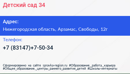 Детский сад №34 по адресу Нижегородская область, Арзамас, Свободы, 12г в дальнейшем Организация, размещена в следующих категориях: