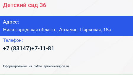 Детский сад №36 по адресу Нижегородская область, Арзамас, Парковая, 18а в дальнейшем Организация, размещена в следующих категориях: