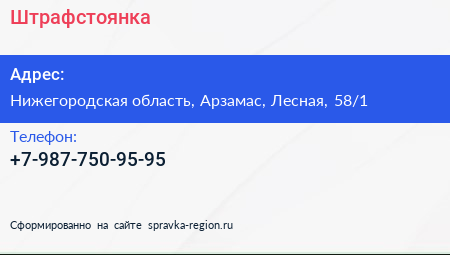 Штрафстоянка по адресу Нижегородская область, Арзамас, Лесная, 58/1 в дальнейшем Организация, размещена в следующих категориях: