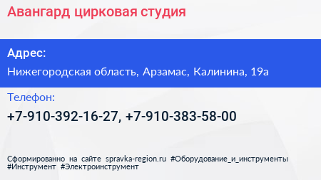 Авангард, цирковая студия по адресу Нижегородская область, Арзамас, Калинина, 19а в дальнейшем Организация, размещена в следующих категориях: