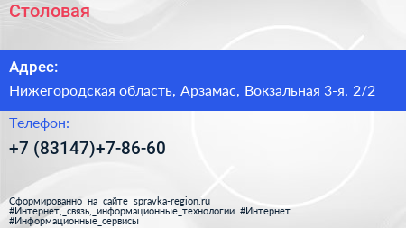 Столовая по адресу Нижегородская область, Арзамас, Вокзальная 3-я, 2/2 в дальнейшем Организация, размещена в следующих категориях: