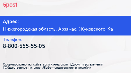 5post по адресу Нижегородская область, Арзамас, Жуковского, 9а в дальнейшем Организация, размещена в следующих категориях: