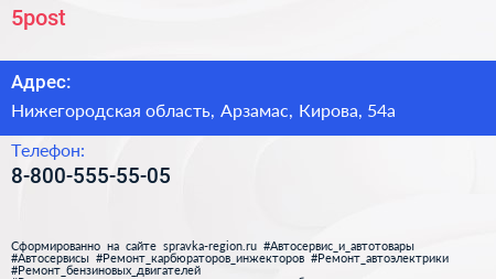 5post по адресу Нижегородская область, Арзамас, Кирова, 54а в дальнейшем Организация, размещена в следующих категориях: