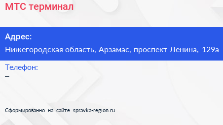 МТС, терминал по адресу Нижегородская область, Арзамас, проспект Ленина, 129а в дальнейшем Организация, размещена в следующих категориях: