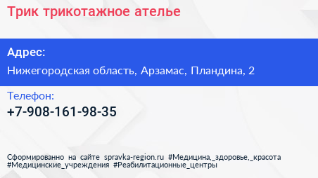 Трик, трикотажное ателье по адресу Нижегородская область, Арзамас, Пландина, 2 в дальнейшем Организация, размещена в следующих категориях: