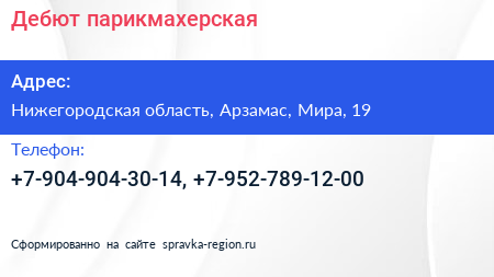 Дебют, парикмахерская по адресу Нижегородская область, Арзамас, Мира, 19 в дальнейшем Организация, размещена в следующих категориях: