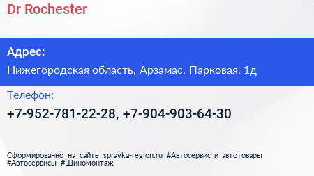 Dr.Rochester по адресу Нижегородская область, Арзамас, Парковая, 1д в дальнейшем Организация, размещена в следующих категориях: