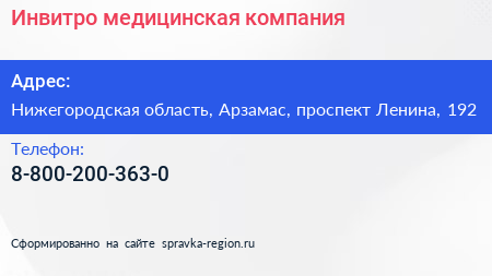 Инвитро, медицинская компания по адресу Нижегородская область, Арзамас, проспект Ленина, 192 в дальнейшем Организация, размещена в следующих категориях: