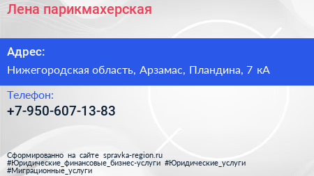 Лена, парикмахерская по адресу Нижегородская область, Арзамас, Пландина, 7 кА в дальнейшем Организация, размещена в следующих категориях: