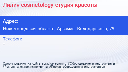 Лилия cosmetology, студия красоты по адресу Нижегородская область, Арзамас, Володарского, 79 в дальнейшем Организация, размещена в следующих категориях: