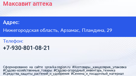 Максавит, аптека по адресу Нижегородская область, Арзамас, Пландина, 29 в дальнейшем Организация, размещена в следующих категориях: