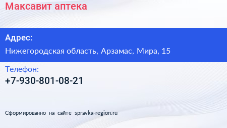 Максавит, аптека по адресу Нижегородская область, Арзамас, Мира, 15 в дальнейшем Организация, размещена в следующих категориях: